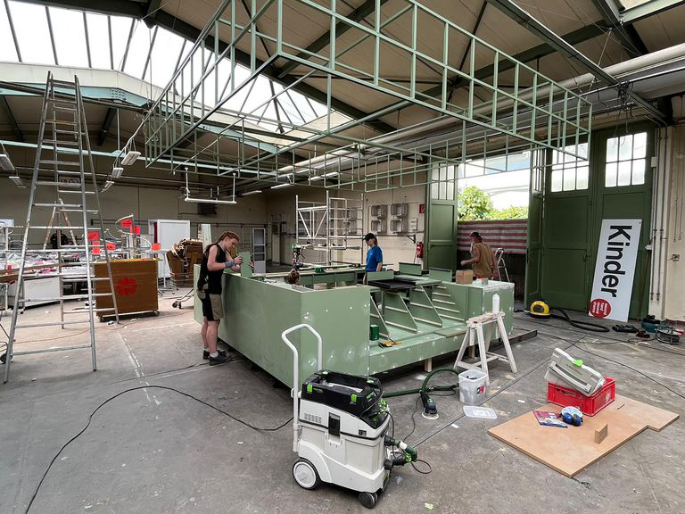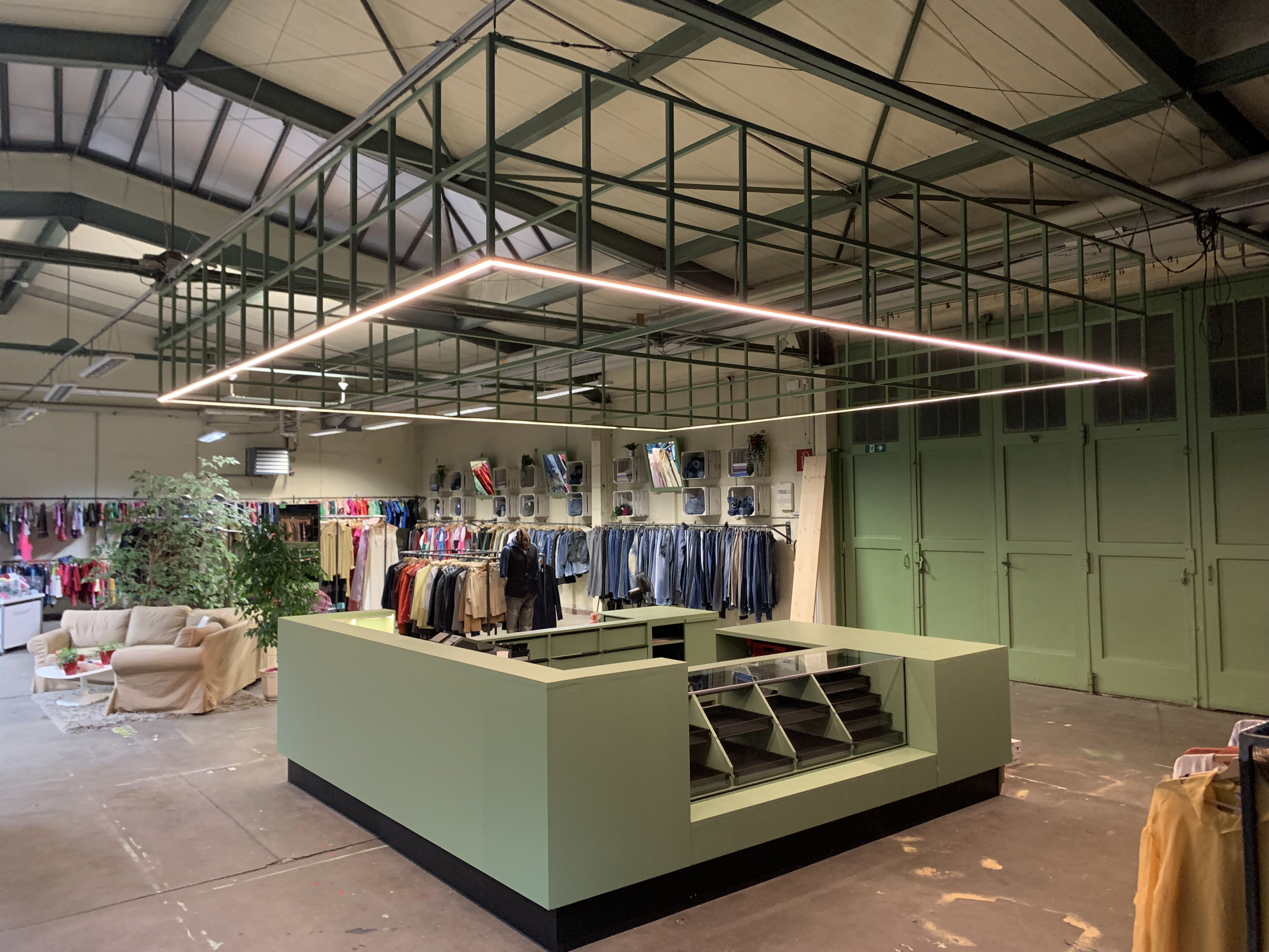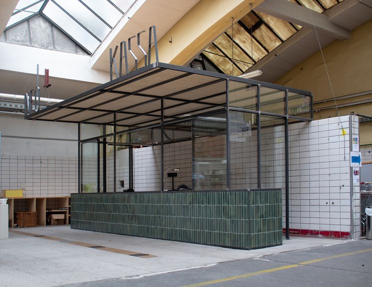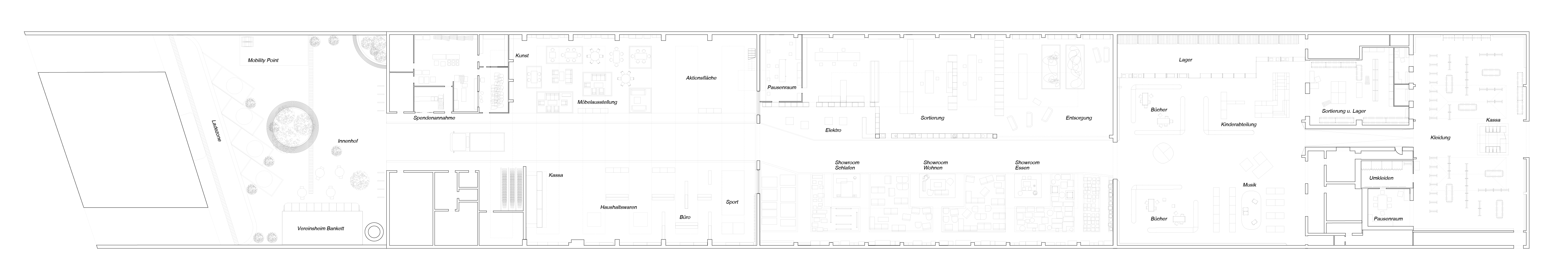 Das Ergebnis ist eine neue Struktur und Atmosphäre: Die Textilhalle wurde neu organisiert, maßgeschneiderte Kassen- und Regalsysteme optimieren die Abläufe, und ein begrüntes Hofareal schafft zusätzlichen Raum für Begegnung. Ein besonderes Highlight ist der umgestaltete Pavillon, der während der Bauphase unter der Leitung des bankett.kollektivs als Begegnungsort diente und nun von neuen Mieter*innen als Café und Ausstellungsort weitergeführt wird.